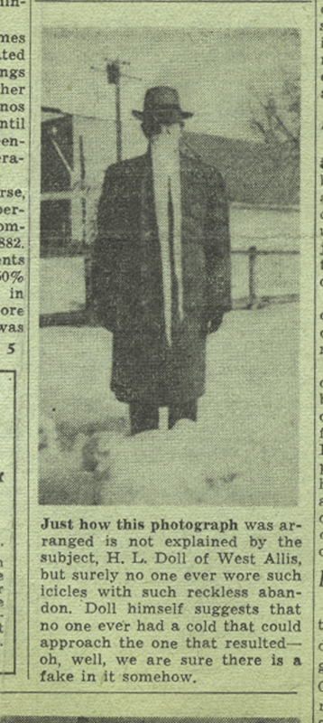 Pa Doll, my maternal grandfather, was born August 11, 1867. He had a great sense of humor, which Ma Doll didn’t necessarily appreciate - especially when it made the papers. Here he is, out by the clothesline mortifying my grandmother once again, for thousands of Milwaukee Journal subscribers to enjoy: