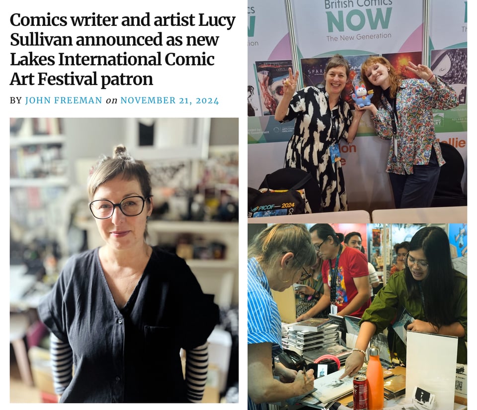 I’m joining Lakes International Comic Arts Festival as their new patron! Now, you may find that moniker as confusing as I did. I am not swinging bags of money at LICAF as if it’s a new Renaissance but instead becoming a cheerleader / industry advisor for them. It’s a genuine privilege to be asked and I’m grateful for the support LICAF have given me & my comics over the years. You can read my interview with John Freeman of Down The Tubes for a deeper dive here: https://downthetubes.net/comics-writer-and-artist-lucy-sullivan-announced-as-new-lakes-international-comic-art-festival-patron/