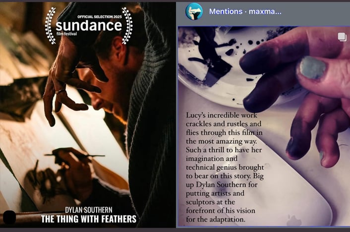 It was a brilliant project to be a part of with a team of incredible talent giving it their all to make a film they care very much about. Being on set was thrilling especially when I could contribute rather than feel like a third wheel and seeing rushes will make me forever impressed at the magic of cinema. There’s a scene that when you see it you will know which one, Cumberbatch is next level and it’s brilliant. I know there are 20 or so people hiding in corners, squeezed up against walls, just doing their jobs to get that scene and yet they leave not a hint of shadow on screen. It’s quite the feat. The World Premiere was in January at Sundance Festival followed by a European Premiere at Berlin. The audiences loved it, some of the critics less so, some more so but there was much chatter so it’s making impressions. It’s definitely in the undefinable genre of films (and not Horror as was marketed at Sundance), hopefully it will get wide distribution so keep ‘em peeled for THE THING WITH FEATHERS in cinemas soon.