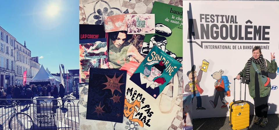 We didn’t lose a minute of time in checking out exhibitions, attending talks and visiting a variety of the marquees but we still didn’t make a number of aspects including the Manga marquee and Junji Ito exhibition. As the festival is hosted all over the picturesque but very hilly town, you put in a fair bit of walking to get to the various sections. Highlights for me were the exhibitions at (permanent) Museums, Future Off (a Small Press mini fest) and the distinctly indie flavour of comics on show at Nouveau Monde, the main exhibitors hall. It was very encouraging to see that, despite the clear love shown for more traditional comics & BD in France, the main flavour of current comics - The art style, the story telling, the compositions - were predominantly what we would call Small Press comics here. I expected to find halls packed with work I would admire but wasn’t particularly taken with, instead had to restrain myself from spending way over my budget on comics, zines, prints and the table of Baudoin books that I would’ve sold a kidney for (despite my French not being anywhere good enough to read them). It turns out my will power is appalling but my new French comics selection is now top notch. It would take up most of this newsletter to go over everything we saw so instead I’d encourage you to visit one year too.