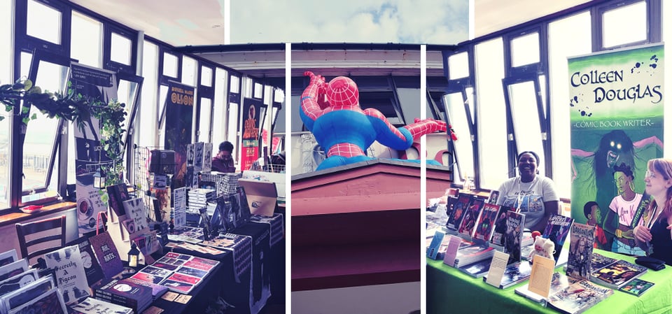 June kicked off with another first as a guest at Hastings Comic Con. It was a wonderful weekend of chatting with visitors and catching up with fellow creators. The line-up included Karrie Fransman, Sarah Gordon, Colleen Douglas, Russell M Olson, Dennis Menheere, Warrick Johnson-Cadwell, Norm Konyu and Ant Williams. All organised by the lovely David Baillie. We had an incredible view of the beach and pier looking out across Hastings whilst getting to know the locals. The event is big on Doctor Who with a couple of Doctors in attendance. It’s a chatty, friendly con and one to look out for next year.