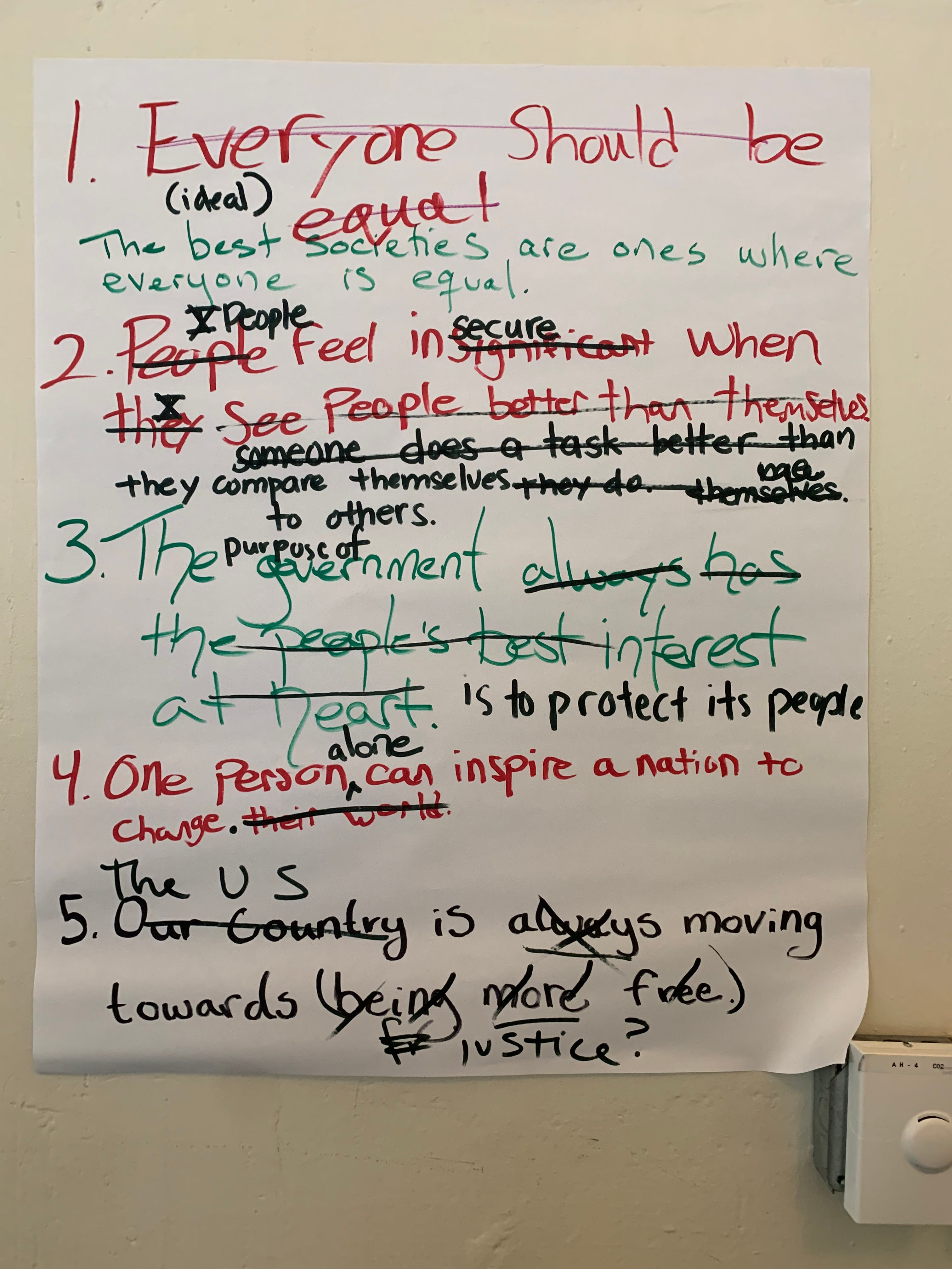 The students go back and forth with each statement on the list (usually about 4-5). They can write down their own or partner's reasons for their answers.
