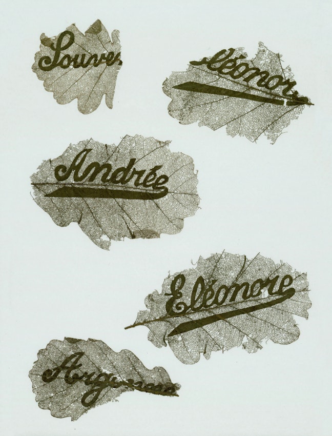 As unique as his objects may seem, Hodeau was not alone in carving leaves. The art form flourished during World War I as a way to enhance letters home with a unique lightweight enclosure. Soldiers used a needle or knife to whittle between the oak and chestnut veins, leaving only words or, sometimes, an image. Due to the partial opacity of perforated leaves, the carvings are especially enchanting when lit from behind; sometimes they’re called “feuilles de poilus”, or “tree leaf lace”.