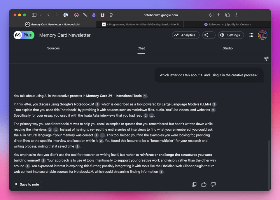 I've loaded the last 12 years of writing, all of Millennial Gaming Speak and The Max Frequency Podcast, and this very newsletter into the AI apparatus. It's a game changer for me and how search works in my brain. I give it a big ol' thumbs up. 👍🏻
