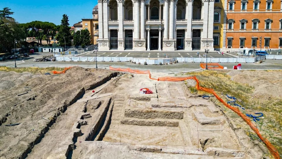 Coincidentally, as we’ve been working through these PDFs, we saw a news article about a new archeological discovery in Rome. Found just outside the church of St. John Lateran (in the city center, and across the river from the Vatican), this complex was the palace for the bishops of Rome until their departure for Avignon in the early 14th century. Then, the area was extensively rebuilt in the early modern period.