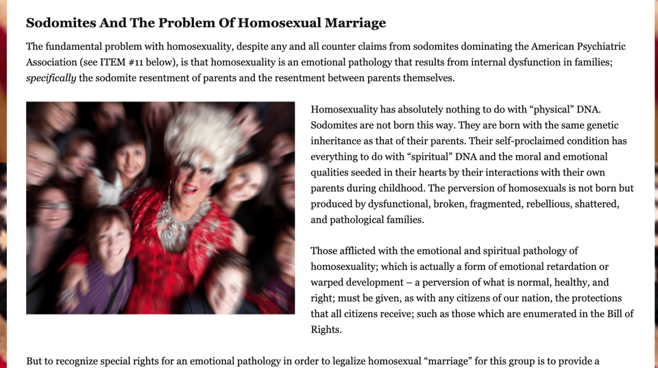 Grundmann thinks that there is a gay agenda, and that it is to spread queerness in order to “justify your poisoned existence.” He thinks the goal of things like a drag queen story hour is to “shatter a child” so that the child has a “soul wound” and, in response to that wound, becomes gay.
