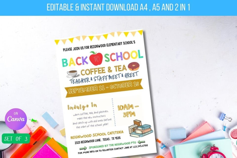 Stop wasting time on generic flyers. Download your editable Back to School Meet and Greet flyer template today and create stunning, customized promotions in minutes. Get noticed, save time, and boost your impact. Shop Now!