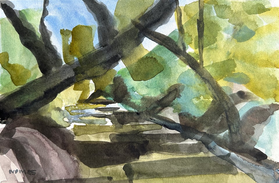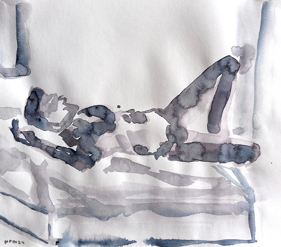 A-SIDE / B-SIDE ARTIST STATEMENT While seemingly disparate and unrelated, the two sides of this show (paintings and textile works) are very much connected—primarily through process and a commitment to near-daily devotion. The watercolor studies were born out of a period in 2024 when I was attempting to reconnect to my painting practice after a hiatus. In my 38 years of living, I’ve learned that consistent, daily practice is the best way for me to build meaningful habits. But for me to commit to doing something daily, the bar has to be very low. When I committed to painting every day during this season of life, the only bar I set for myself was “brush touches paper every day.” The point wasn’t to make a masterpiece. The point was to find time each day to pause and process the swirl of my interior landscape by noticing something outside of myself. The point was also to remind myself how much I enjoy moving paint around on paper! Some days I only made one small gesture with my brush. Other days I painted for hours. The paintings in this show are a selection from this time of tending. They are small poems about devotion and the beauty in the everyday. This devotion to daily practice carried into my work with textiles. The fabric studies were mostly all made over the summer of 2025 in the lead-up to this show, during the early morning hours as the sun was peaking through. A phrase I once heard, ”A little bit of something is better than a whole lot of nothing,” was a mantra for me as I reminded myself that each day, my only goal was to cut up some fabric, sew it together, and just see. In moments of stuckness or time-scarcity, I’d add helpful constraints, challenging myself to work small and only use two fabrics. With an emphasis on play, juxtaposition, and experimentation, these textile works are expressions of my attempts at “lightening up” while digesting news, memories, grief, and the combination of sadness and anxiety that seems to bubble up when I set down one creative practice to focus on another (can’t do it all all the time!). Which is the A-side and which is the B-side? I don’t know! I suppose you can decide for yourself if you’d like, but I’m not sure it really matters :) Nicole Musgrave September 2025