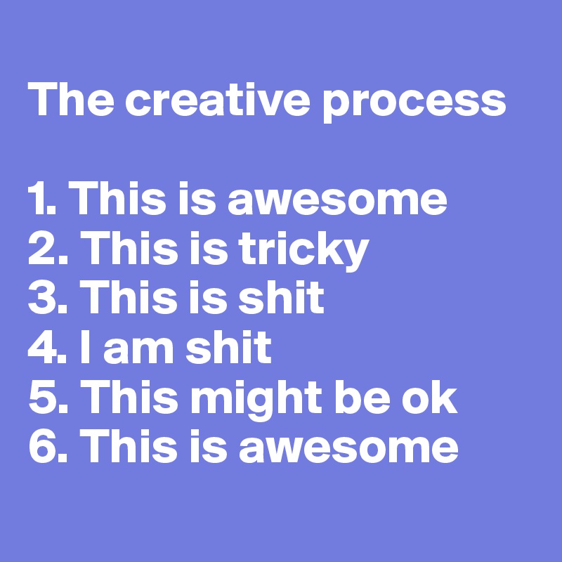 But historically, I’ve often dipped out at the “I am shit” phase, never giving myself a chance to get to the “This is awesome” part.