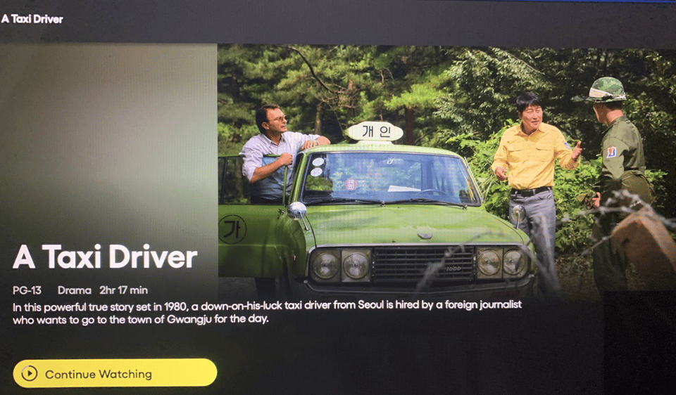 It’s a comedy, at least initially. Set in 1980 and based on a true story, it begins with a cabbie in Seoul who finds himself stuck in traffic thanks to political protests and chants of “Throw out the dictatorship and bring in democracy!”