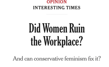 Not long ago, the New York Times published a piece asking, in all seriousness: “Did Women Ruin the Workplace?