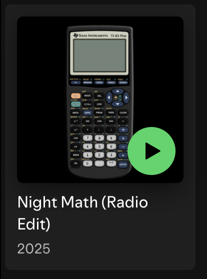 One of those jobs has also been writing a bonafide pop hit. There’s a scene in the play where the entire group dances to their “trip song”—that pop song that everyone is absolutely sick of at this point, but is important to the trip because it’ll make everyone think of the weekend every time they hear it. I realized that I couldn’t use a real pop song for rights issues (unless I got permission, but Sabrina Carpenter isn’t answering my texts), so I thought “why don’t we just build a pop song”? So I got together with two of the greatest music makers I know, Mary Lou and Calvin Seabrooks, and we created a song about having sex using math metaphors. It’s called “Night Math” and it’s so stupid and so good and you can hear it on Spotify now.