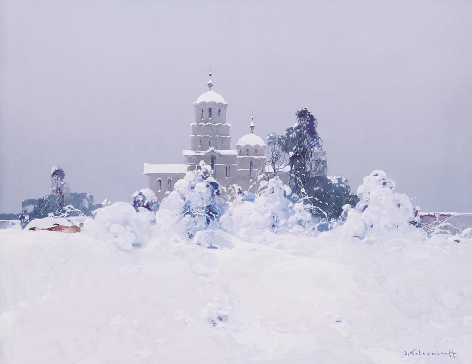 “Church in the Snow” by painter Stepan Fedorovitch Kolesnikoff (1879–1955)