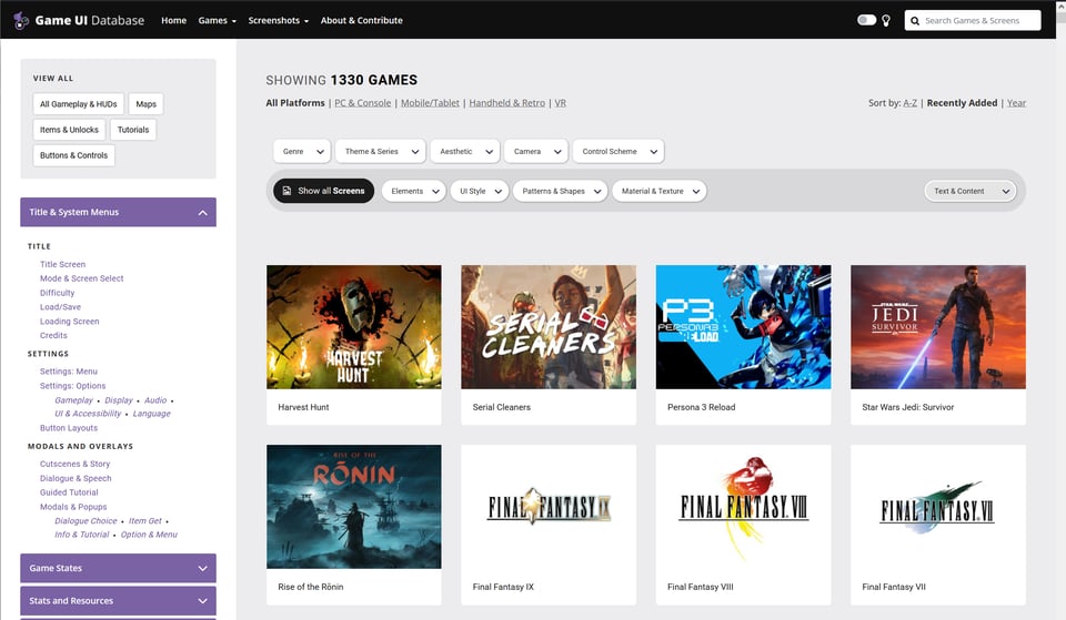 RESOURCE • User Interfaces — My most cherished resource when researching user interfaces is Edd Coates’ amazing ►Game UI Database that has screenshots of UIs in over 1000 games in its database. If you wonder, for example, how tutorial screens in touch-controlled 3D card games on mobile look like, it’s but a few clicks away.