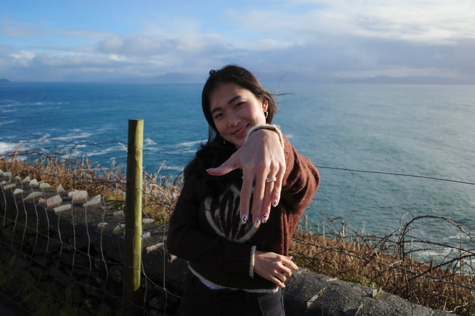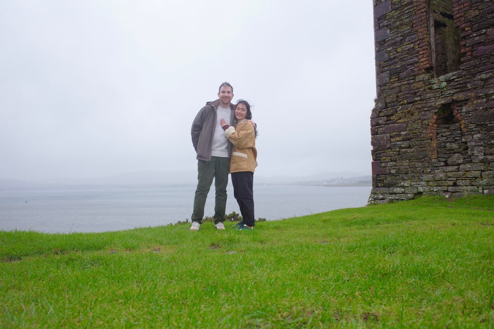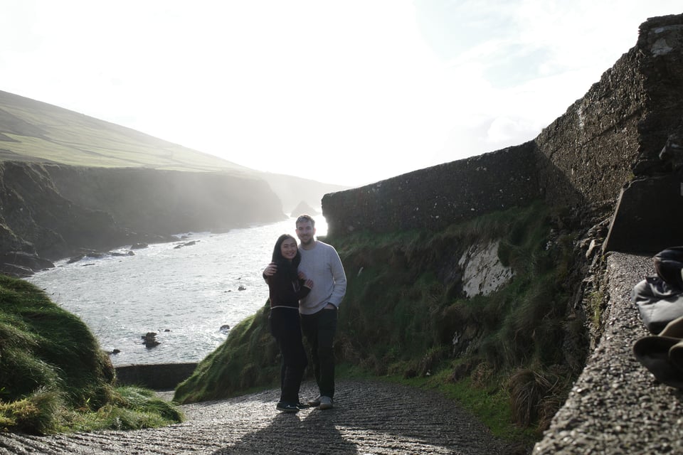 We’d been to Dingle together twice before, but both in the summer. This time, on New Year’s Eve, it was pouring rain. We were drying off in the Airbnb about midday when the rain eased off slightly. Ruairí hustled me into the car and drove us to edge of Dingle bay. In lashing winds and next to a 19th century stone fort named – I could not love this more – Hussey’s Folly, my intelligent and kind and principled Ruairí asked me to marry him. I said yes :)