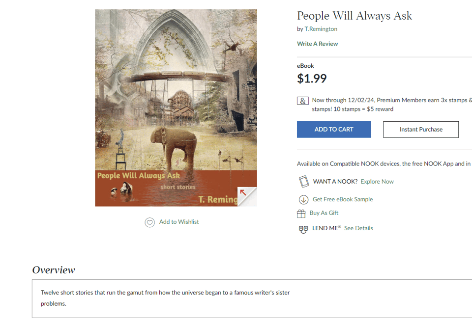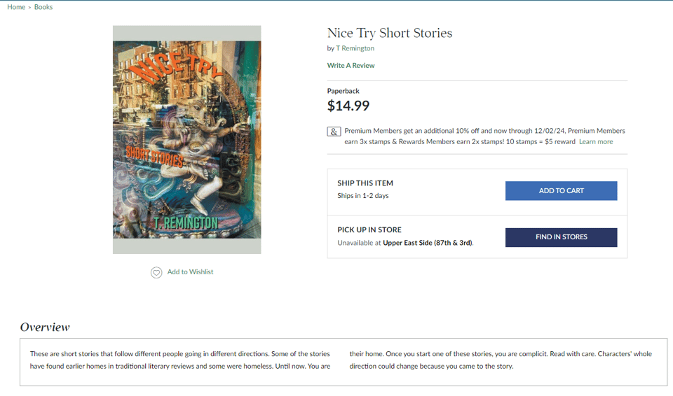 I’m also seeing that my first collection of short stories, “Nice Try” is now available as a paperback from the nice folks at B&N as well: