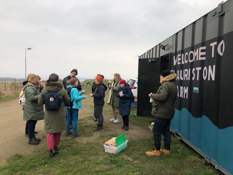 We had just enough time to buy up the last of the bakery’s bread and buns before heading to nearby Lauriston Farm. Run by Edinburgh Agroecology Coop, this project is partnering with Granton Community Gardeners to scale up the amount of local grains grown for use in the bakery, with exciting plans to develop a local grain chain. Lisa took us on a tour around the farm, highlighting the varied projects that have found a home there and their approaches to ensuring that everyone can access the growing spaces and food produced. Research assistant Annie explained the concept of a ‘zero carbon loaf’ being examined as part of the partnership between the bakery and farm, and we all admired the outdoor kitchen and bread oven being built using techniques that Lisa learnt in Thailand. Despite the dreich weather it was an inspiring day learning about not only the movement happening in this corner of Edinburgh, but also within the diverse communities represented from all across Scotland! Many thanks to the team at Granton Garden Bakery and Lauriston Farm for hosting this visit, and to Scottish Community Alliance and Scottish Communities Climate Action Network for the ‘Community Learning Exchange’ funding which made this possible. |