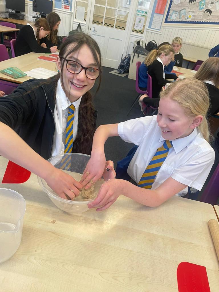 Last year our Soil to Slice citizen science wheat growing project helped Limekilns Primary School bake their lawn. The school has teamed up with Charlestown, Limekilns and Pattismuir Nature Conservation Group to set up a beautiful community garden. The children decided to grow winter wheat along with their vegetables, and in January the p7 class got a taster of the final process. Alongside a lesson about the large-scale grain system, they each hand-threshed some grain, used their muscle power to mill it into flour then mixed up a couple of wholemeal flatbreads. These were enjoyed together in class, with many pupils saying they would definitely make them again at home.