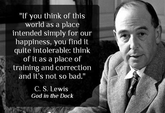 FINAL QUOTE. "If you think of this world as a place intended simply for our happiness, you find it quite intolerable: think of it as a place of training and correction and it's not so bad." (C. S. Lewis, God in the Dock)