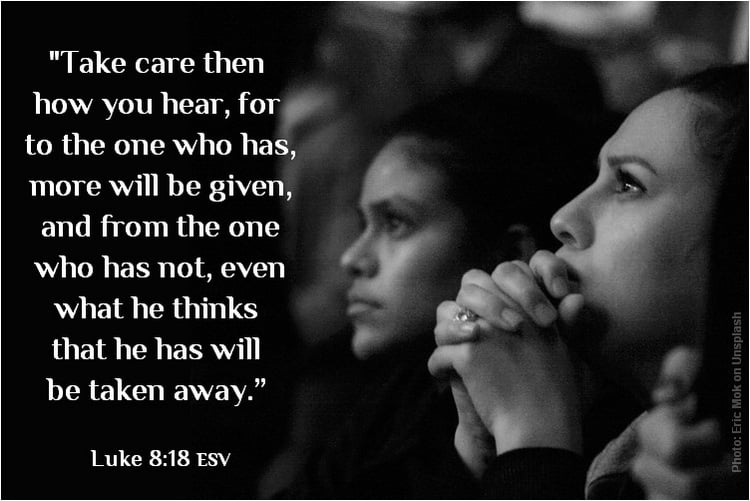 "Take care then how you hear, for to the one who has, more will be given, and from the one who has not, even what he thinks that he has will be taken away.” (Luke 8:18)