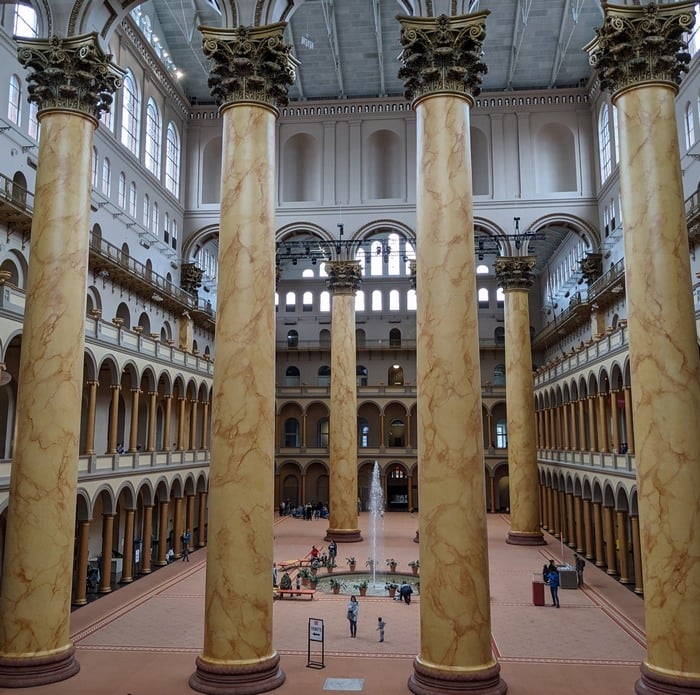 -- During our trip to Washington D.C. this weekend we visited the National Building Museum (see photo below of the great room). It's recommended and has a large area for children to run around in, as well as a room dedicated to Lego buildings. Another favorite place for us is the National Portrait Gallery, which also has a large, beautiful atrium just right for energetic little legs.
