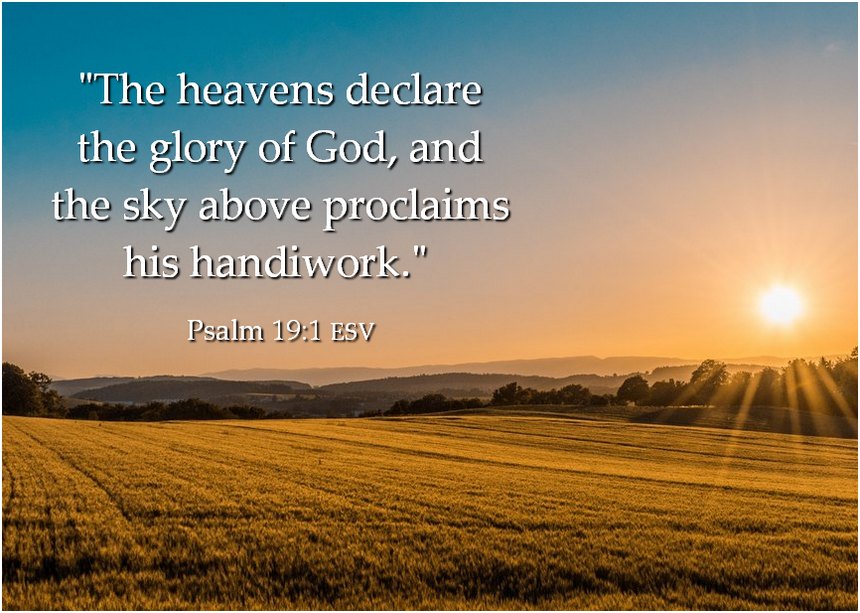 THE HEAVENS DECLARE HIS GLORY (Ps 19). God has revealed himself in creation (vv 1-6; cf Rom 1:20; Acts 14:17) and in his word (vv 7-11; cf Ps 119:89; Josh 1:8; 2 Tim 3:16). These are sometimes called the “two tables” of God’s revelation. Creation is referred to as general revelation, and Scripture as special revelation. The sun can give warmth to the earth (v 6), but it’s God’s word that brings light to the understanding and healing to the soul (vv 7-8). And it is this special revelation in words – intelligible language – that brings light to our hidden faults that we might confess them and so walk humbly with God (v 12). Theologian Carl F. H. Henry wrote,