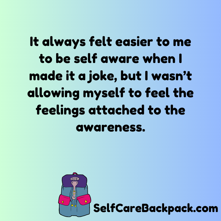 Sometimes it’s not like that. Sometimes it’s knowing what my feelings feel like, the sensations they’re prompting in my body, and the memories they’re prompting, and I can reflect on that.