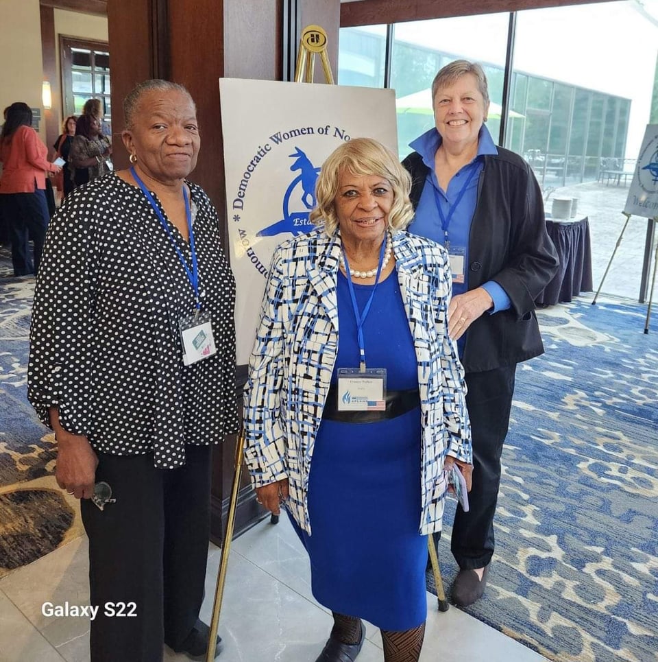 The Democratic Women of NC elected new officers for 2023-2024: President: Paula Shelton (Moore County), 1st Vice-President: Cramer Vaughan (New Hanover County), 2nd Vice-President: Vickie Zangwill (Carteret County), 3rd Vice-President: Allison Allen (Mecklenburg County), Secretary: Pam Genant (Burke County), and Treasurer: Denise Castleberry Hall (Johnston County).