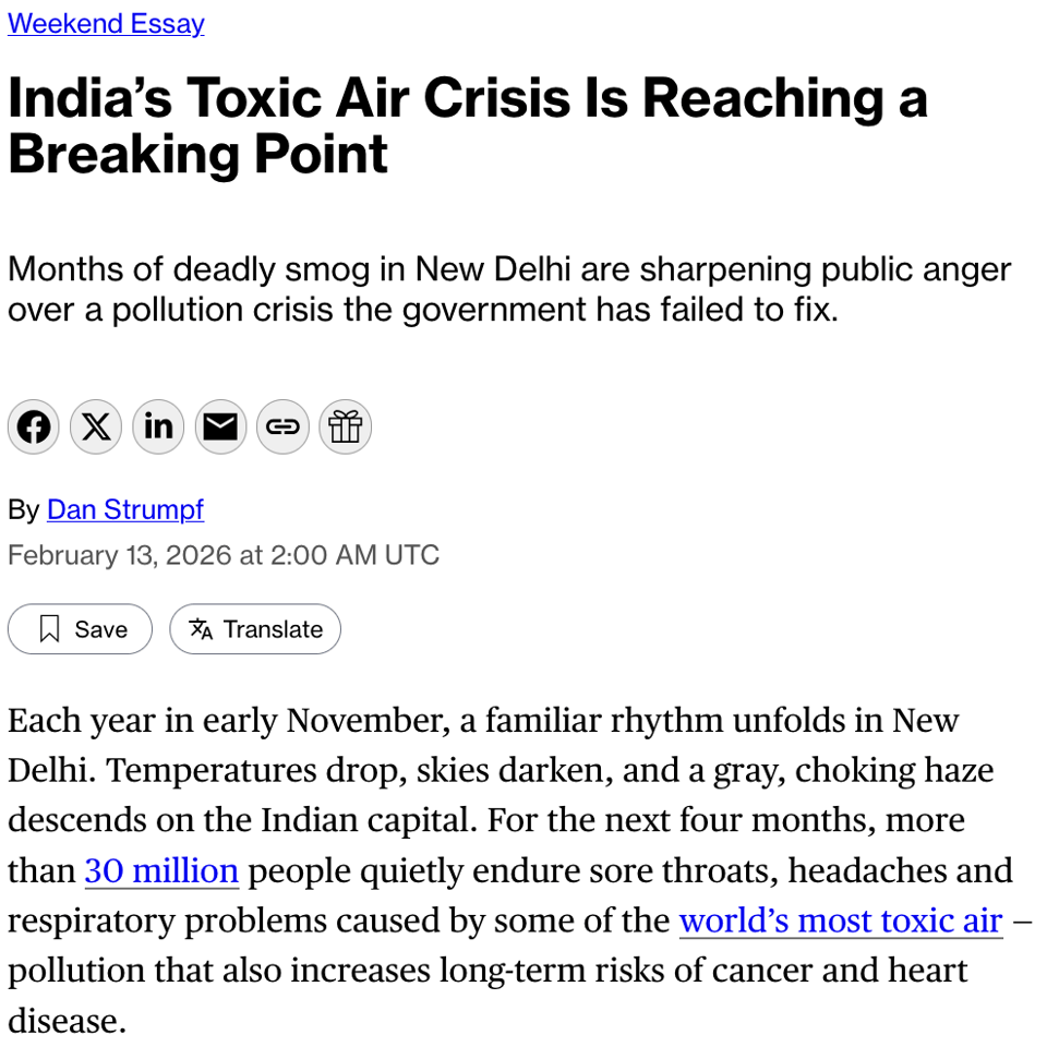 Interestingly enough, smog (smoke+fog) doesn’t have an immediate translation in my mother tongue Hindi. We have a word for fog: Kohraa, one for smoke: Dhuaan, and yet another for mist: Dhundh. Nothing still except Dhuaan (smoke) for smog, lifting the veil that the English language so easily masks with the in-betweenness of the word smog. For seven, maybe eight years (since 2018) I endured through that haze of Delhi, dust particles, PM2.5, PM10, NOx floating in the ether, before I moved to Sweden in 2024. Not many are as lucky though.