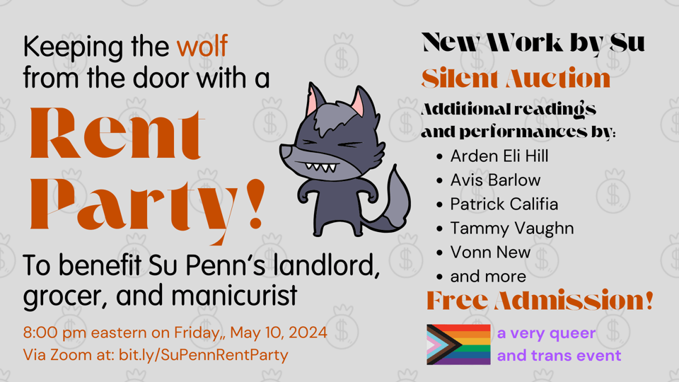 I've been on unpaid medical leave since April 3, and am throwing a rent party tonight to raise some funds as I get some fresh financial ducks in a row.