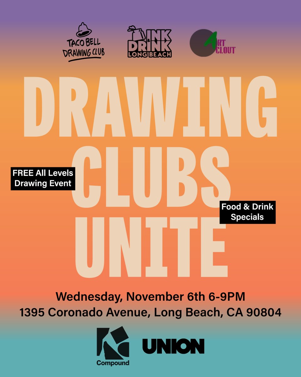 On Wednesday, November 6th, from 6-9 PM, Long Beach’s vibrant drawing community will come together for an exciting evening of drawing at Compound, with the inaugural Drawing Clubs Unite event.