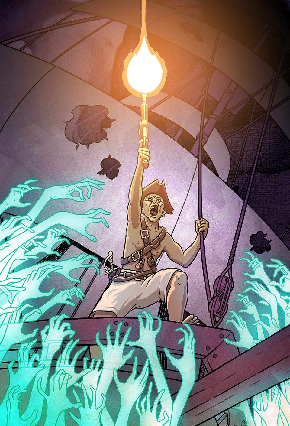 Jim: Yes, it’s been interesting to see this take shape. I think the idea of a ship as an entity made up of people is really crucial for a seafaring (or even perhaps a spaceship) game, and we’ve certainly looked closely at what other games have done with their rules, many of which take the principle that we’ve tackled here to very different places. The ship stuff is far from our only big challenge for rules -- the aforementioned Seadogs get a great deal of attention, as well as the doom that they face. I think one of the things that’s most exciting about pirate stories, as well as sea-faring stories more broadly, is the struggle against fate, and against doom. The sea is such an implacable backdrop of inevitable disaster that it would be impossible or even foolish not to make it the central motor of this. Our Seadogs face an urgent need for redemption… But let’s come back to that. The other big thing to discuss up front, I think, is your move into colour design and illustration for this project. I know that’s been a significant timesink: can you talk a bit about your R&D, and how you reached the striking look we are seeing in the new images?
