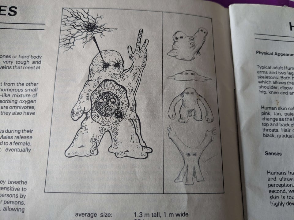 All this absorbed into my amoeba-like corpus, I feel like I already understood, way back at the dawn of my consciousness in the Eighties, that all these half-arsed aliens and laser rifles are some cliche shit. And that’s okay! I want to be relishing the iconic nonsense of it. A game like this is like a bath filled with lukewarm tropes. With this in mind, however, I feel like need to draw attention to this incredible (in the sense that it causes one to be incredulous) paragraph from the Star Frontiers Wikipedia page: