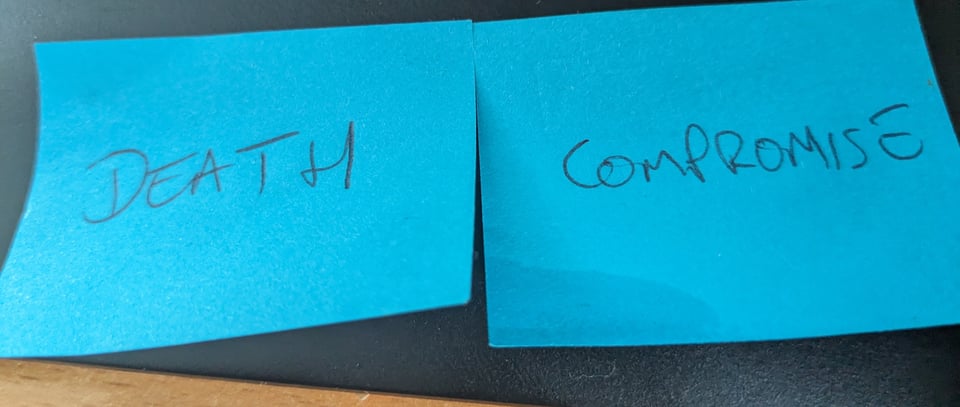 I also got to playtest a thing, leading my children to question the provenance of these Post It notes on my desk.