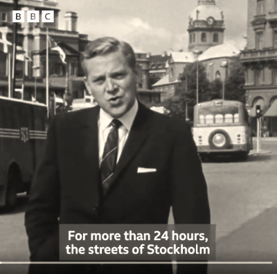 A clip from the BBC archives about that week 57 years ago when Sweden made the switch; what the Beeb called, “the greatest social upheaval in Sweden's history.” Well, maybe that’s a little over the top, but it goes to show you … well, I don’t know what exactly, but it goes to show you something.