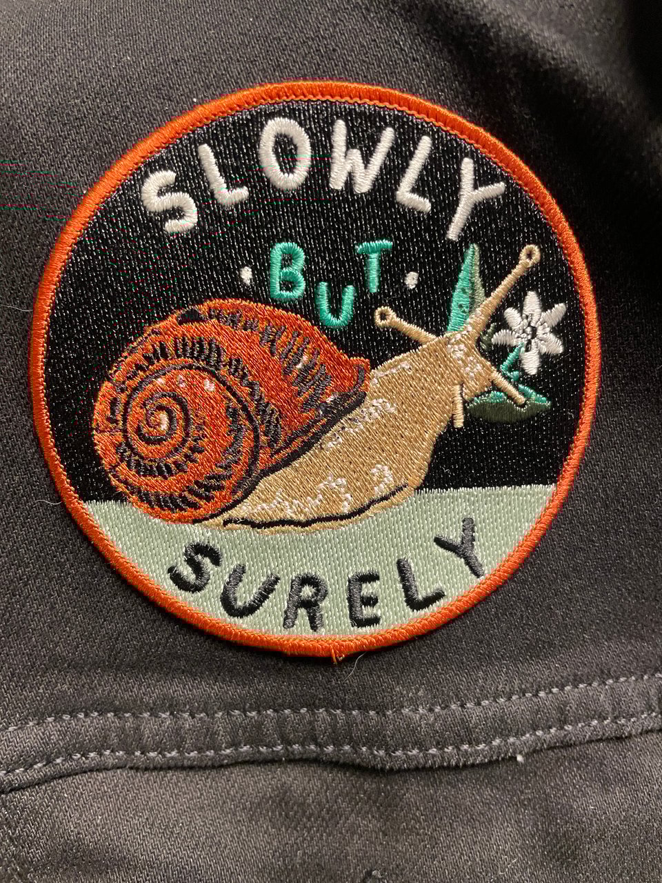 Our Executive Chef at work loves my snail decal on my black denim jacket I wear at the change of seasons.