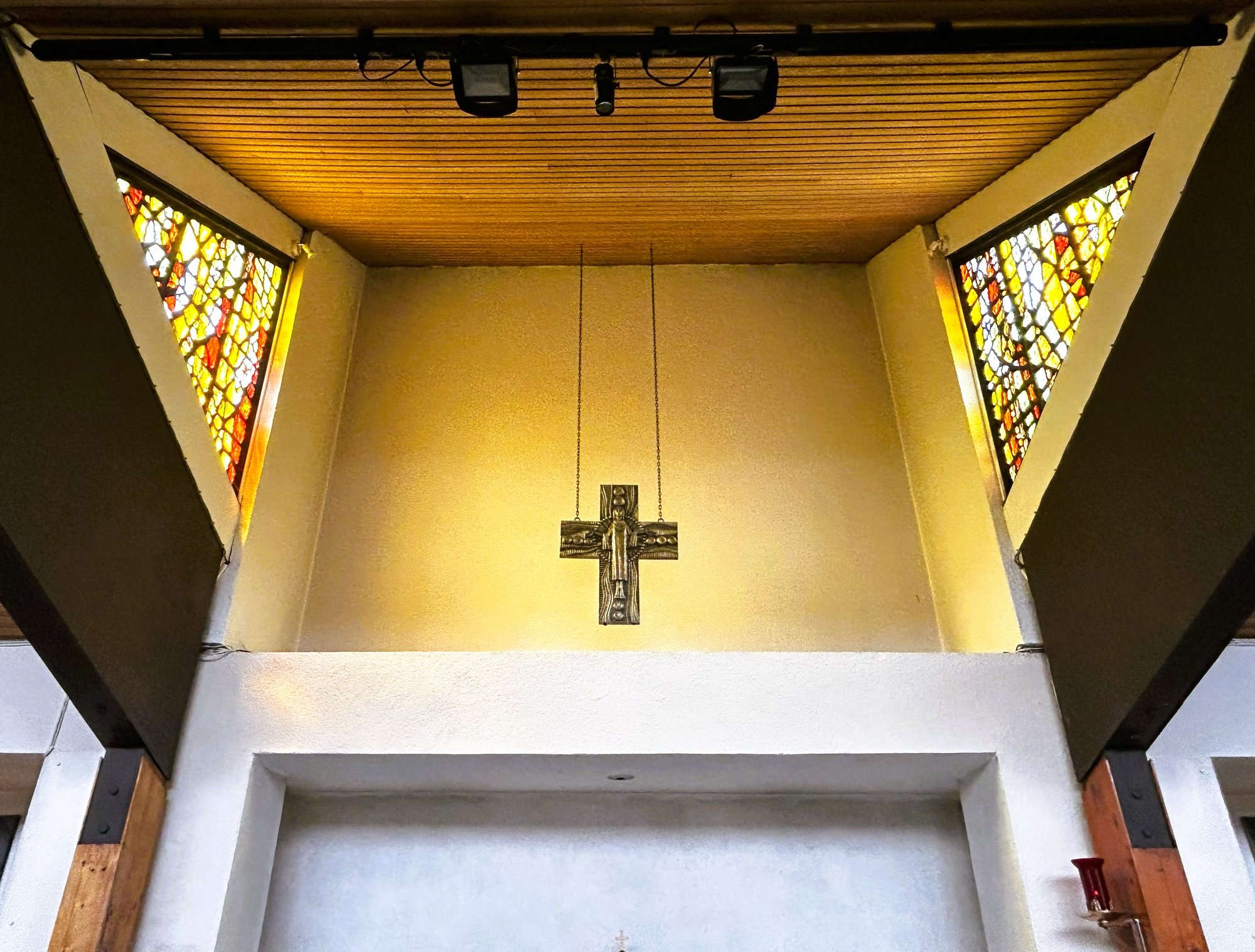The most radical part of the theatre, and the part that makes it probably unique in the country, is how Hopegood approached the need to serve multiple purposes. The entire ranked seating – all 200+ seats – is bolted to a platform that can be raised into the ceiling.