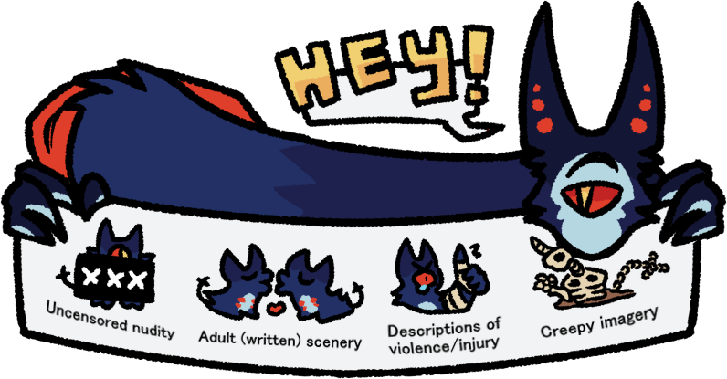 “Hey, I’m ZJ. I’m an eternally bored demon that likes to watch people very quietly and without consent. Especially this freak, I steal their art when they sleep. No reason. I like to cause upset… and I guess we share the same interests, oh well. Here I am, sharing my finds with you!”