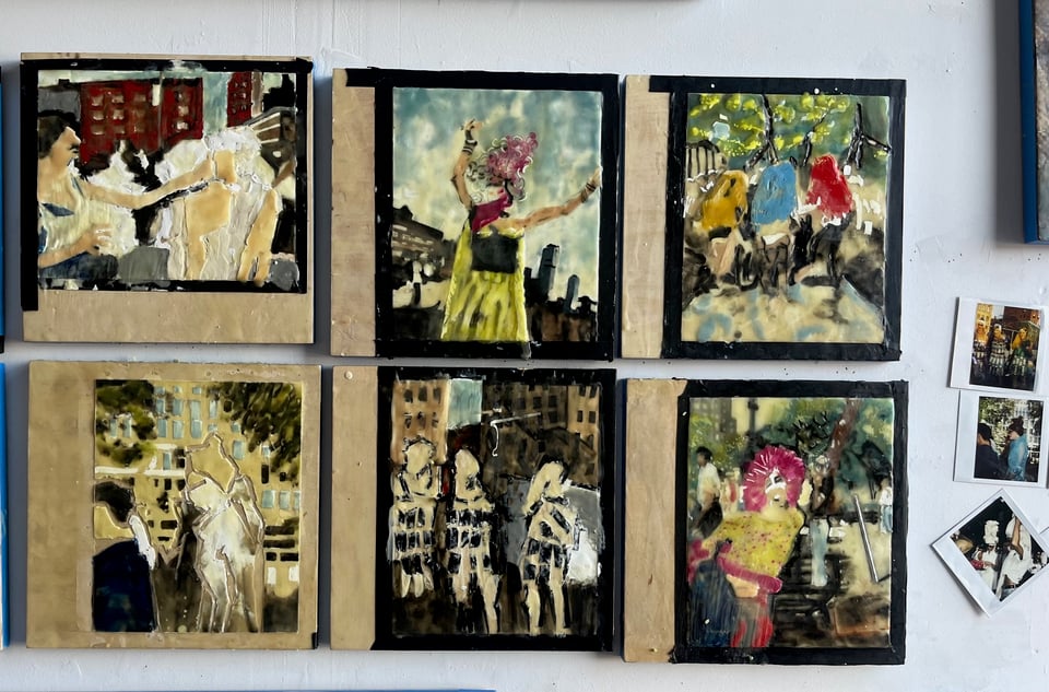 The above photo shows the next phase of my Polaroid Series, “The Other Ones: Wigstock.” The paintings are based on Polaroids taken by Adjoa Stack in New York in the early 90’s. Wigstock is an outdoor drag festival that began in the mid 80’s. It served as the unofficial end of summer celebration for the NY gay community. It was usually held around Labor Day.