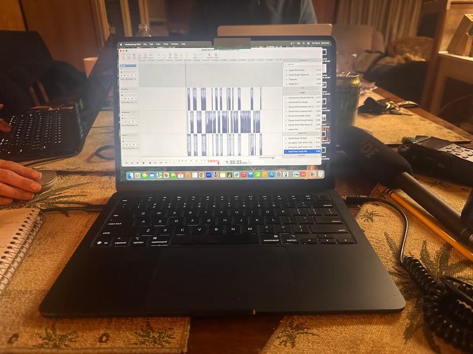 I think that’s why this workshop was so important for me. I mean, could I read about all of these aspects of storymaking and try them on my own? Sure. But it’s just so much more fun and generative to learn in community, and have some experts show you on your laptop how to do things, and talk you through the artistic choices and decisions you can make. While Weinberg was putting some final touches on my piece in Hindenburg, I just stuck my face as close to my laptop screen as possible, watching his key strokes and trackpad changes, trusting that my eyeballs would deliver the information to some memory center in my brain. And that if I continue to practice through small projects I give myself, I too can learn these details and get better. A couple of things I learned at the end as I fiddled with levels of my various tracks was to isolate a track if maybe the tape isn’t great and I need to crank it up. And crossfades with ambi and music, lining tracks up right so everything flows and transitions aren’t abrupt. JHC, this is all going to take some practice, but I can’t wait.
