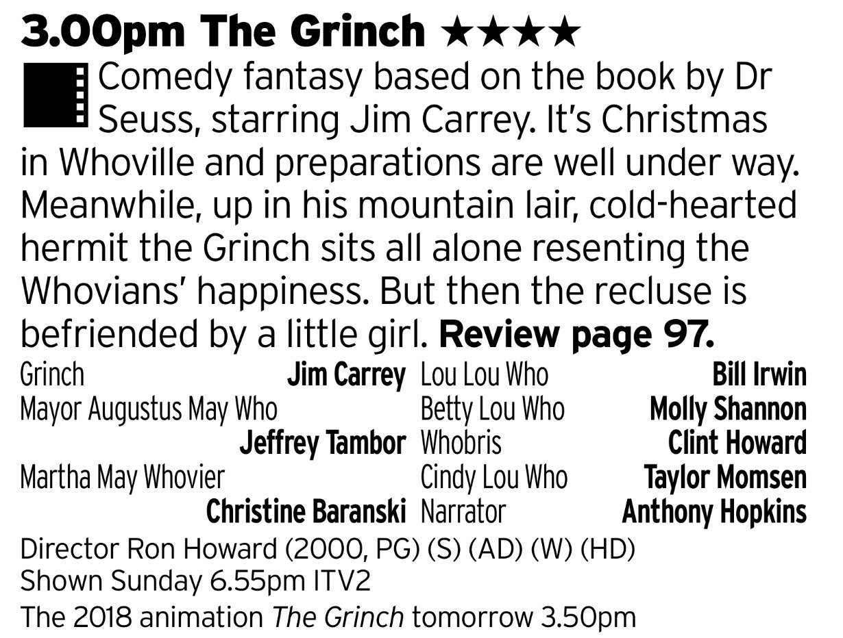 Time for some more Christmas fare, and a film which is essentially about how to torture an actor; Carrey spent 92 days in the Grinch costume making this film. Was it worth it? I mean, yeah? Its a good Christmas film, it looks nuts thanks to the set design properly invoking the world of the Whos and you can’t argue with Carrey’s performance. I mean, you could, you could say its a little over the top but (a) its Jim Carrey and (b) he’s playing the Grinch so you should be saying how well he was cast.