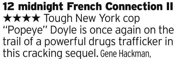 Did this get in the list because it has a character called Doyle? I mean, maybe. It helps that its a good film as well, a bit more of a thriller compared to the first film but still a great cop action film. Its all anchored by Gene Hackman in all his grizzled 70s glory, sometimes a bit too grizzled but there you go
