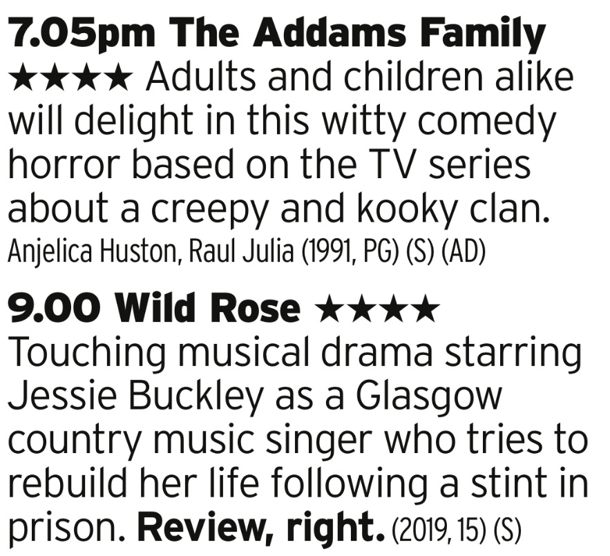 The theme of casting continues unabated; has there ever been a film as well cast, from top to bottom, as The Addams Family? Raul Julia is the pick of the cast, but honestly there isn’t a weak link in the film at all. And it has probably the best front flip in all of films. And then Wild Rose is a good film as well, with a great soundtrack to boot.