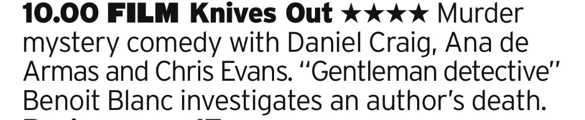 I’ve been on something of a murder mystery kick over the past year or so, getting into Japanese locked room mystery books, watching all of the ITV Poirot series and starting my own detective agency. Well, maybe not the last one. Anyway, I’m starting to wonder if all that was kicked off by this; Rian Johnson and Daniel Craig both stepped out of the shadows of their big franchises with this, an Agatha Christie-esque mystery with, and here’s that theme again, a great cast at the top of their game.