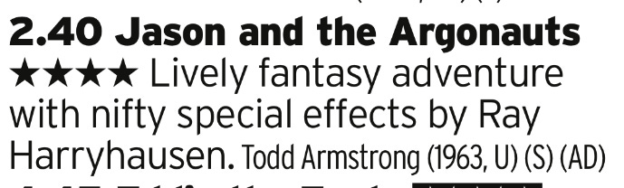 More Harryhausen goodness, its actually this one that has the iconic battle with the skeleton warriors so don’t listen to me from a couple of days ago.