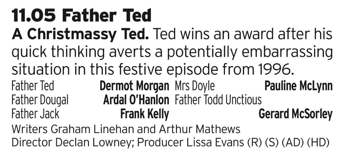 Speaking of people being dicks, time to exercise our “separate the art from the artist” muscles with the Father Ted Christmas Special. It probably is the best of all time when it comes to Christmas Specials, its just a shame that we have to accept that it was made by somebody who now tries to actively make the world a worse place for lots of people.