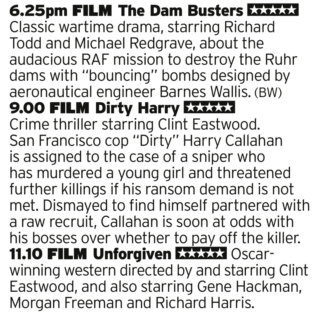 More back to back to back classics here, each one a different flavour; a definitive British WWII film, the original loose canon cop film and what remains arguably the best modern western. Although, for 1992 can it still be classed as modern? Just typing that has made me feel vaguely sick. God I’m old.