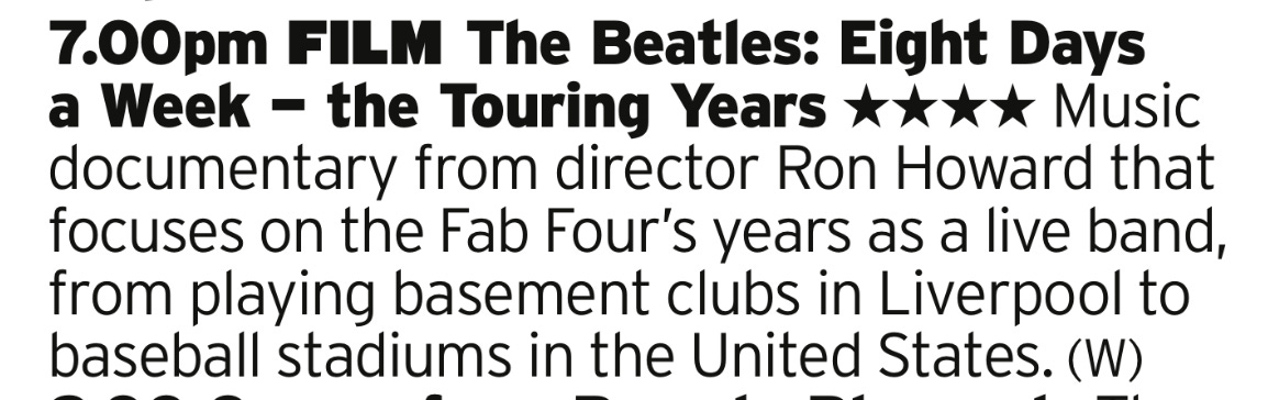Ron Howard’s quality of work can swing wildly from great to really rubs (Apollo 13 to The Da Vinci Code essentially) but thankfully this one is on the good end of the spectrum. Whilst all the recent chat has been about Peter Jackson’s Beatles doc Get Back there’s still space for this one as this is set at the beginning of their career during their touring years. And great it is too, with some archival footage that scrubs up beautifully