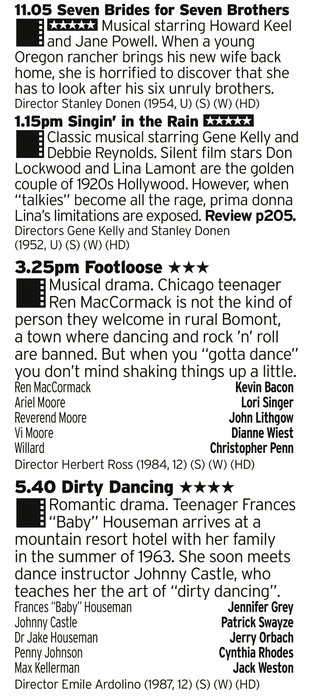 If you DO want to watch anything else, then you have a couple of great musicals back to back. And yes, you have Dirty Dancing as well if you really need it there. I mean, it can’t hold a candle to the first 2 films, especially Singin’ In The Rain as thats a masterpiece, even the weird surreal bit with the guy singing into a megaphone. Any film that goes “I have an idea for something!” and then dissolves to a 10 minute wordless ballet sequence has got some big brass balls that need to be acknowledged.