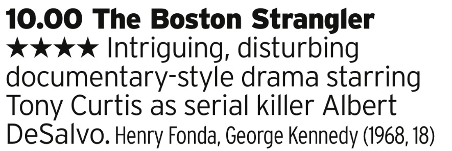 Does this count as a pre-cursor to the modern True Crime obsession? I mean, maybe? It was a bit vilified at the time, much in the same way that the recent Netflix show about Dahmer was criticised. Its a good film, Tony Curtis very much playing against type. Last time we saw him he was in a knockabout comedy, which this very much is not